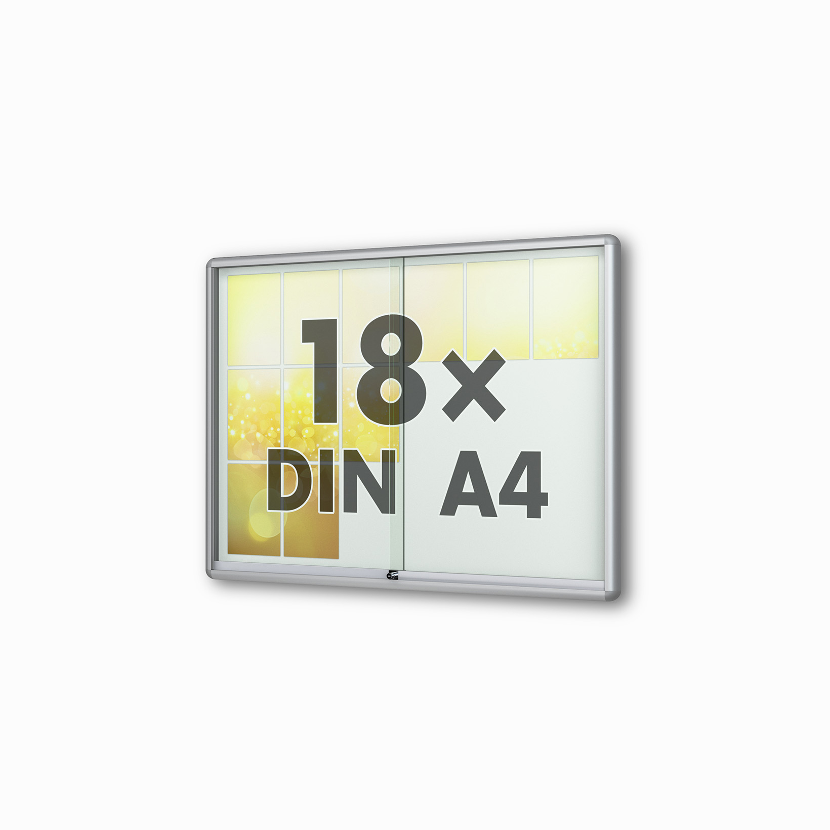 18 x DIN A4 Schaukasten Moveo - "die Schulvitrine" - 50 mm Bautiefe - mit Brandschutzklasse A1 - Rollengelagerte Schiebetüren✓ abschließbar✓ ESG-Sicherheitsglas✓