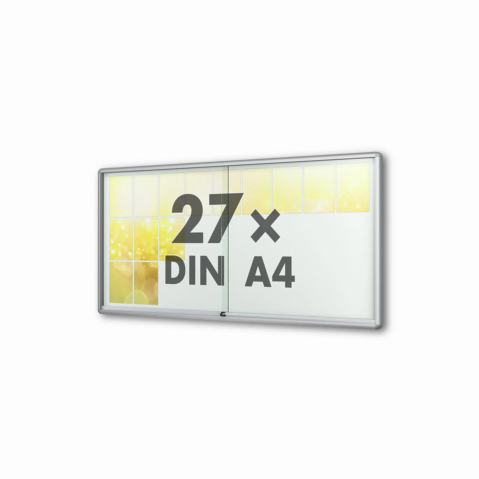 27 x DIN A4 Schaukasten Moveo - "die Schulvitrine" - 50 mm Bautiefe - mit Brandschutzklasse A1 - Rollengelagerte Schiebetüren✓ abschließbar✓ ESG-Sicherheitsglas✓