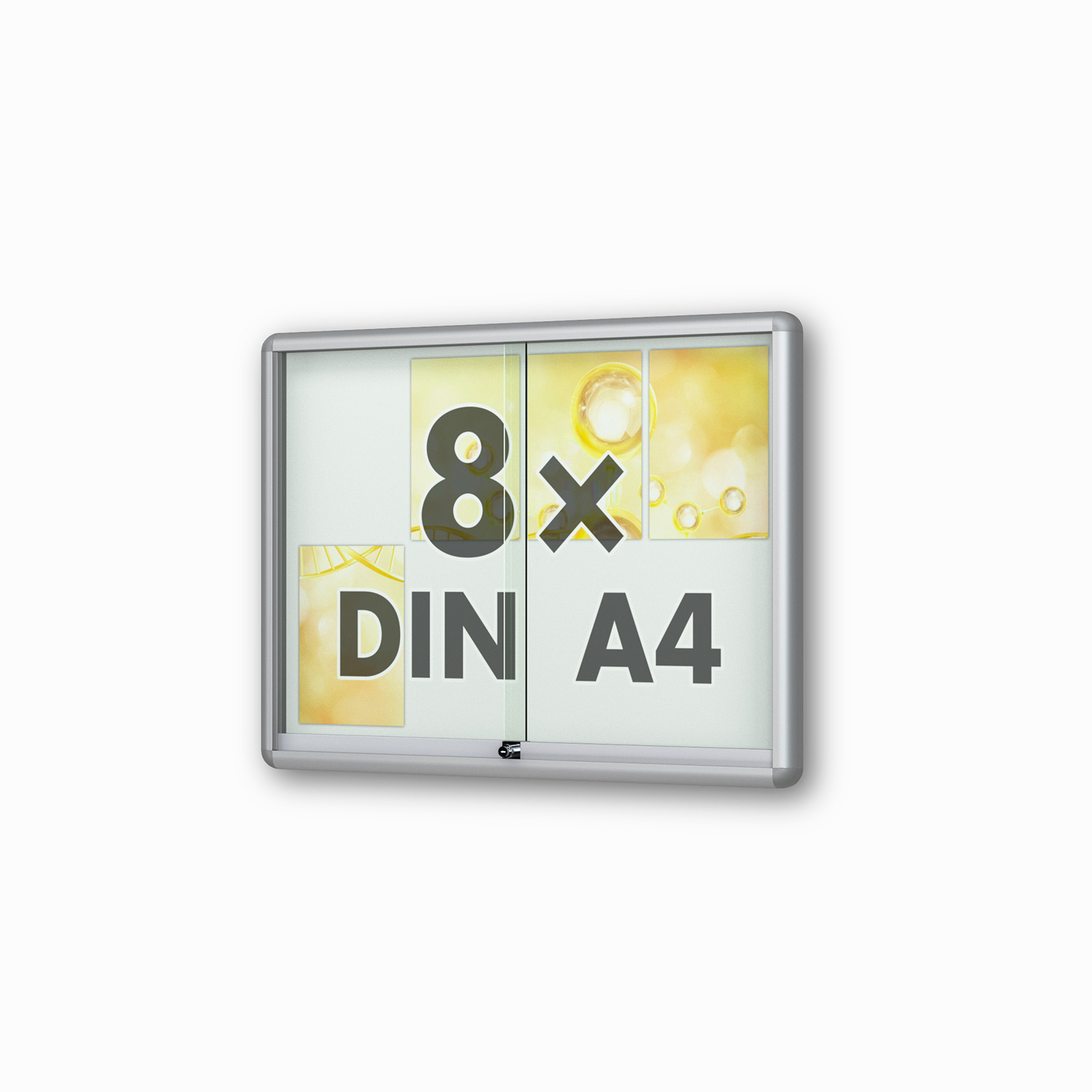 8 x DIN A4 Schaukasten Moveo - "die Schulvitrine" - 50 mm Bautiefe - mit Brandschutzklasse A1 - Rollengelagerte Schiebetüren✓ abschließbar✓ ESG-Sicherheitsglas✓