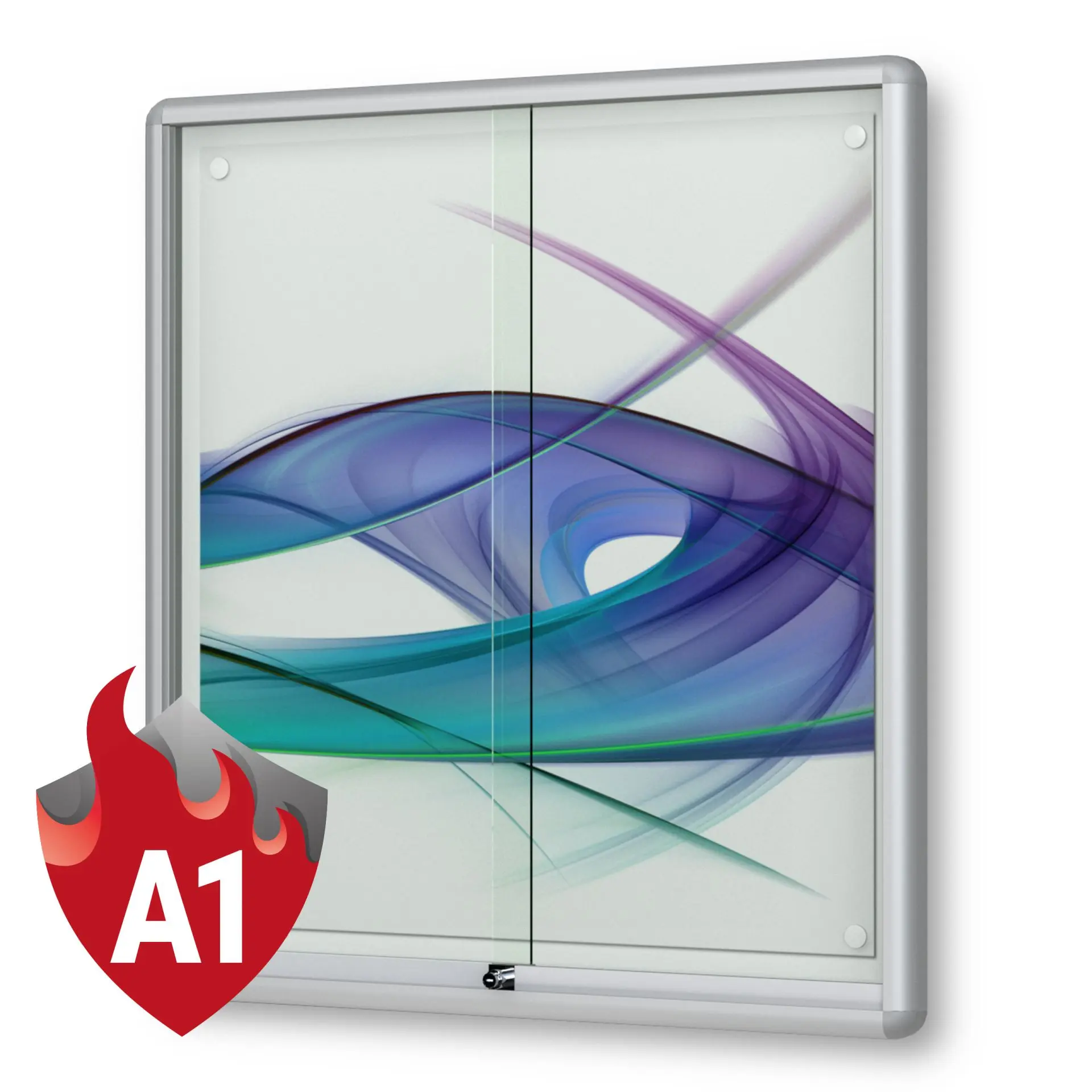 Merkmale Schaukasten: Brandschutz, Unfallschutz (gerundete Kanten), Wandmontage, abschliessbar, magnetisch, mit Schiebetüren